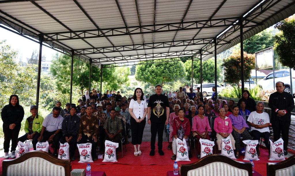 PAKPAK.WAHANANEWS.CO, Salak - Bupati Pakpak Bharat, Franc Bernhard Tumanggor bersama istri, Ny. Juniatry Franc Bernhard Tumanggor membagikan paket bantuan rehabilitasi sosial cluster lansia bagi ratusan lansia se-Kabupaten Pakpak Bharat, di Salak, Selasa (14/10/2025).
