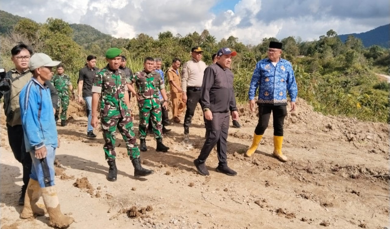 PAKPAK.WAHANANEWS.CO, Salak - Bupati Pakpak Bharat, Sumatera Utara, Franc Bernhard Tumanggor meninjau kondisi longsor di desa Simerpara, Kecamatan Pergetteng-Getteng Sengkut, Kamis (4/12/2025).