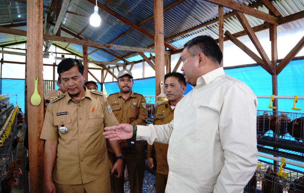 PAKPAK.WAHANANEWS.CO, Salak - Bupati Pakpak Bharat, Sumatera Utara, Franc Bernhard Tumanggor meninjau peternakan ayam petelur milik BUMDes Dlleng Lumut, Desa Sukaramai, Kecamatan Kerajaan, Selasa (21/10/2025).